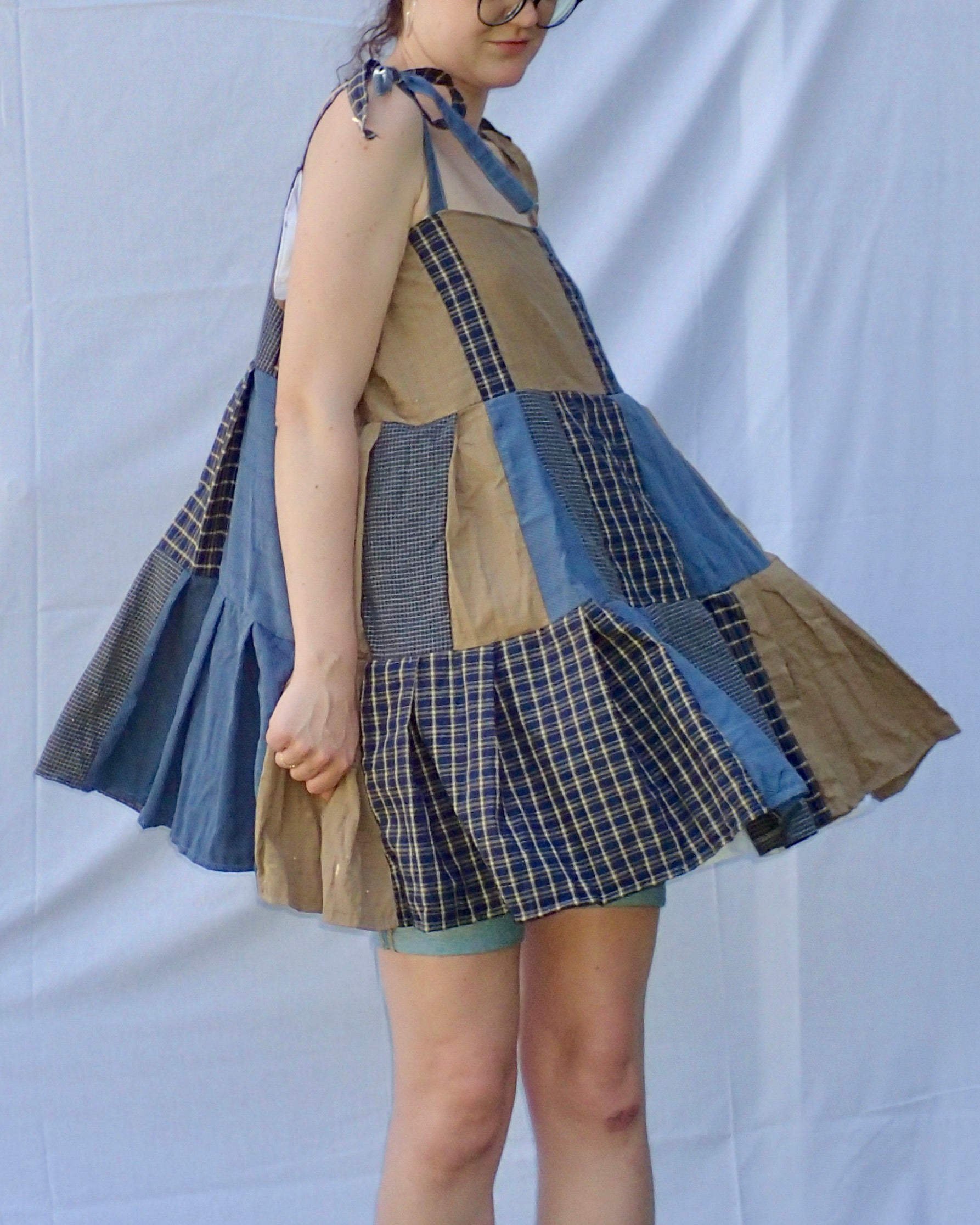 This Dress is voluminous and playful - inspired by my grandmother and her childhood in rural Michigan, this is intended to strike a balance of classic beauty and comfort, femininity and adventure. These square neck, baby-dolls have tie spaghetti straps and ruffled bodies.